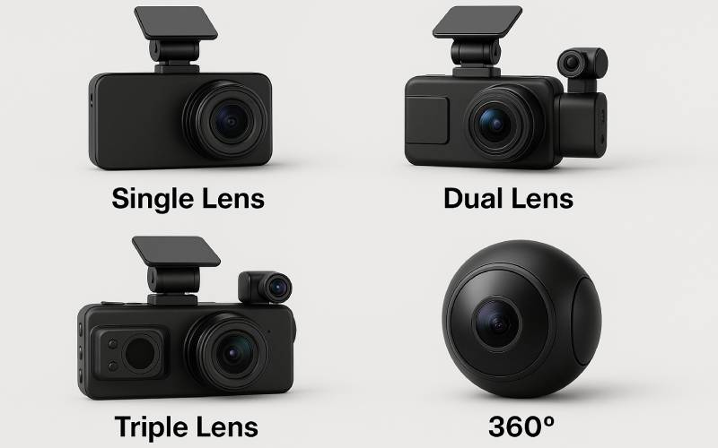 مدلهای مختلفی از دوربینهای ثبت وقایع خودرو وجود دارند که از نظر اندازه و رنگ متفاوت هستند، اما هدف اصلی همه آنها ثبت وقایعی است که در خارج از خودرو (و گاهی در داخل خودرو با توجه به نوع دوربین) رخ میدهد. بهطور کلی، 3 نوع دوربین ثبت وقایع وجود دارد که به دستههای زیر تقسیم میشوند: